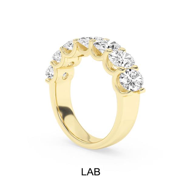14K Gold Half Eternity Oval Shaped Lab Grown Diamond U-prong Band. The band is set with 7 Oval Shaped F/G VS+ LAB Diamonds totaling approximately 3.15cts. This ring comes in sizes 4.0-9.0.